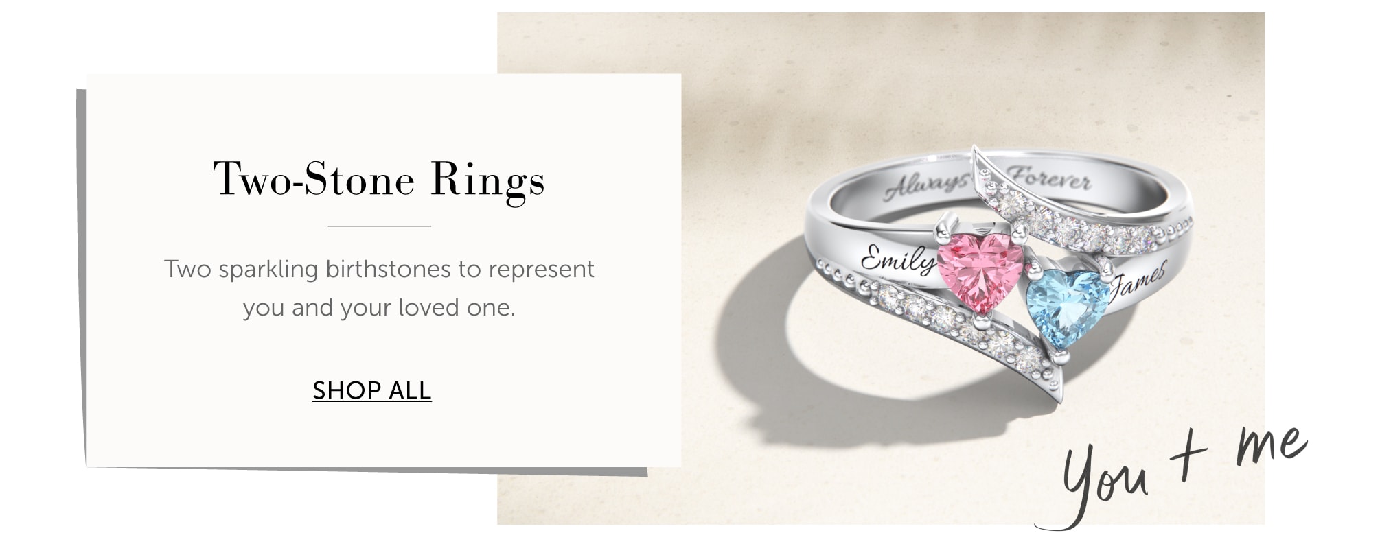 • Double Heart Gemstone Ring with Accents